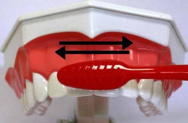 Este tehnica cea mai simplă, la care apelează spontan majoritatea pacienţilor. Constă în deplasarea în plan orizontal a smocurilor periei, atât pe suprafețele vestibulare şi orale, cât şi pe cele ocluzale. Dezavantaje: nu igienizează spaţiile proximale,dimpotrivă, tasează alimentele în spaţiile interdentare sub punctul de contact, ducând la inflamarea papilelor interdentare.